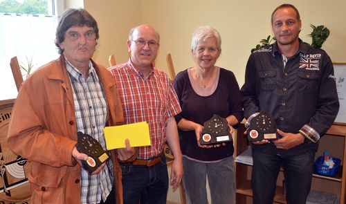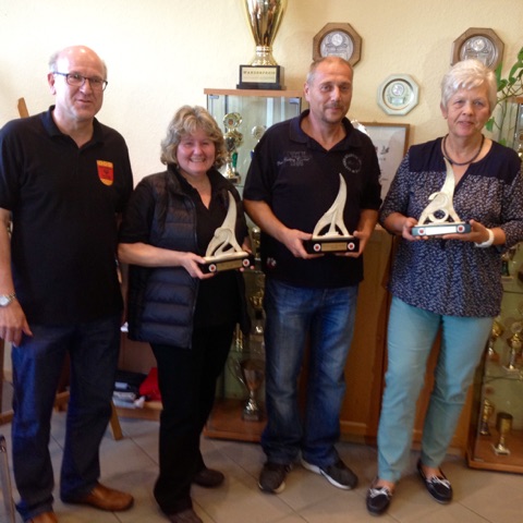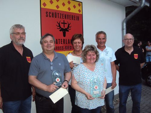 v.l.n.r. Lukas Wirries (Gewinner Platz 2); Marko Quandt (Fun-Tastic-Four - Platz 1); Michael Jendras (Gewinner Platz 1); Lieselotte Deumler (SFC Giesen II - Platz 2 ); Thomas Trippner (Gewinner Platz 3) und Jens Härtel (TSC Giesen II - Platz 3)