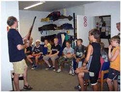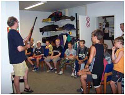 Ferienpassaktion : Jugendleiter Franz Heinrich Pagel erklärt ein Luftgewehr |